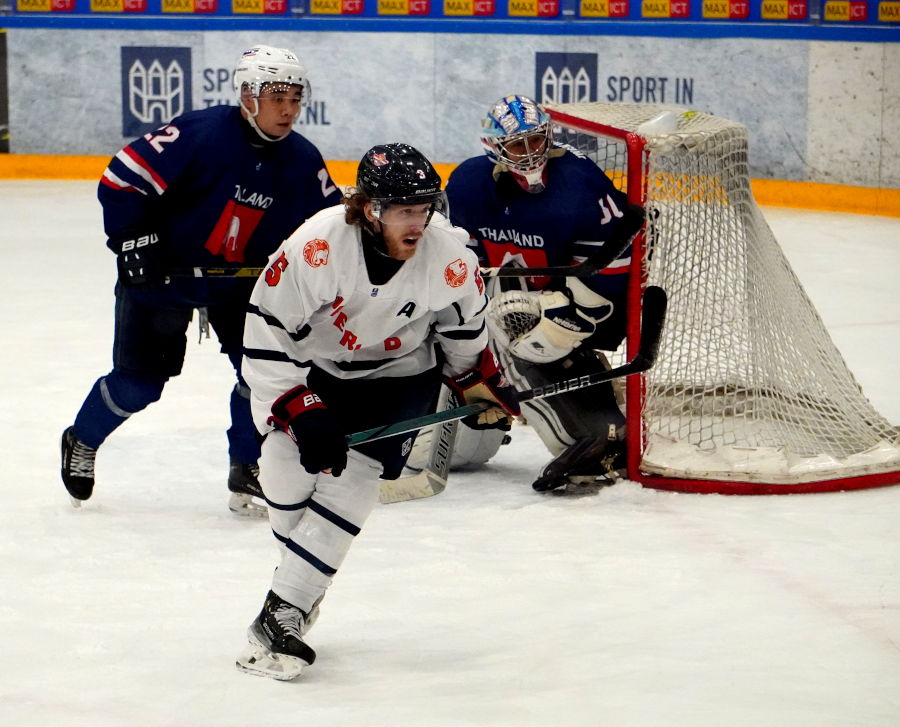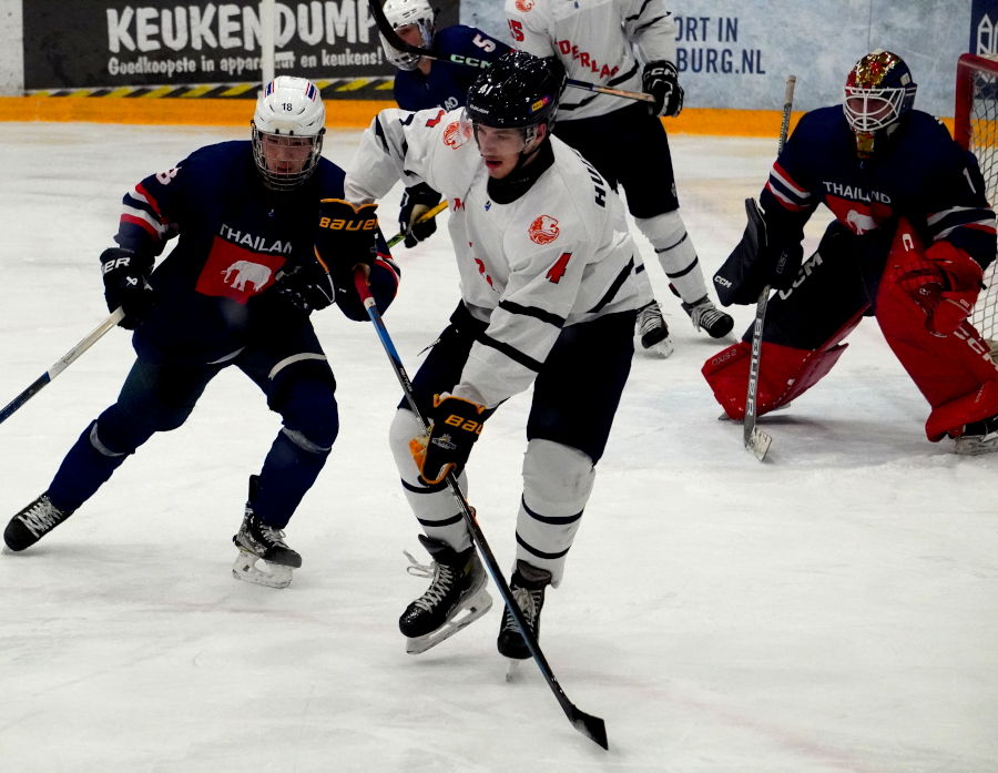 Met Joey Oosterveld voor cross check op de strafbank breekt Reno de Hondt op de linkerflank uit. Hij geeft voor op de meegeschaatste Danny Stempher, die de tweede shorthander van de match markeert, 1-7 (20.57). Met een onetimer op de powerplay lukt Bartek Bison de 1-8 (27.04). Op de volgende aanval scoort Jasper Nordemann de 1-9 (27.41). De volgende powerplay van Nederland is het Marvin Timmer die in de korte hoek scoort 1-10 (28.25). Jonne de Bonth scoort 1-11. Dan is het de beurt aan de verdedigers. Floris van Elten scoort met een verdekt schot 1-12. Bij de verre paal wordt Bjorn Borgman uitsekend bedient door Guus van Nes. En Bjorn tekent op 34.55 voor 1-13. En in de slotperiode gaat Nederland gewoon door met druk zetten. Verdediger Jordy Verkiel scoort weer, 1-14. Maar liefst tienmaal liet Nederland het net achter de Thaise doelman bollen. Overigens kreeg doelman Benjamin David Kleineschay na de 1-19 van Jasper Nordemann een 'publiekswissel' na 52.48. Doelman Pattarapol Ungkulpattanasuk moest viermaal vissen. Een monsteroverwinning van 1-23 voor Nederland. Daarmee een langstaand record van 19-0, tegen Spanje, teniet doend. Mooi om te zien dat de jongeren als Jay de Ruiter, Marvin Timmer en Jay Huisman volop geïntegreerd zijn in het team. MVP voor Thailand doelman Benjamin David Kleineschay en voor Nederland Bartek Bison. Overigens zal Danny Stempher met zijn twee goals en zeven assists flink stijgen op de topscorers aller tijden van Oranje. IJshockey Nederland voorzitter Jan Hopstaken vertelde over de Thais en het toernooi het volgende:"IJshockey is in Thailand een elitesport. De vader, tevens voorzitter van de Thais ijshockeybond, van de coach of een speler is de grote mecenas. Hij heeft in zijn mall een ijsbaan laten bouwen. Waarschijnlijk de enige ijshal in het land. De voorzitter kan het zich veroorloven om de nationale ploeg zo'n wereldreis te laten maken. In tegenstelling tot Mexico, dat heeft afgehaakt vanwege de kosten. Mexico had zich opgeworpen voor de organisatie van dit toernooi. Maar dan hadden wij €40.000,- moeten ophoesten voor de trip. Daarom hebben we als hoogst gerangschikt land van dit deelnemersveld de organisatie geclaimd."